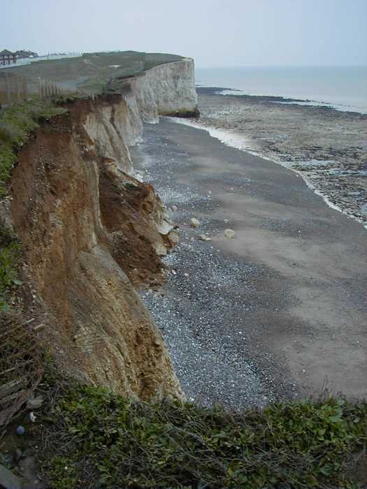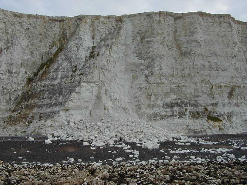 - The set of five slides shows the removal of a small sized cliff fall between Saltdean and Telscombe from April 2001 to March 2002. The debris rests on the shingle beach and removal was determined by wave reaching the cliff foot. Consequently, removal took place in the autumn/winter when high spring tides and storm waves could reach the back of the beach.