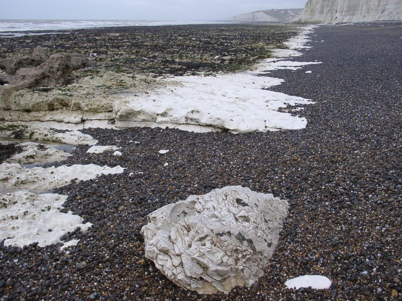 - Erosion of a small stump of chalk shore platform at Saltdean in the summer of 2001 until January 2002. Also note the changes in the vegetation cover of the shore platform.