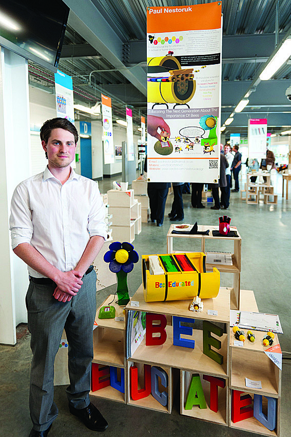 - Bee educated: an interactional education aid that teaches children about the importance of bees to our environment. Designer Paul Nestoruk (see middle picture above) has already landed a job in the design team at car manufacturer Jaguar.