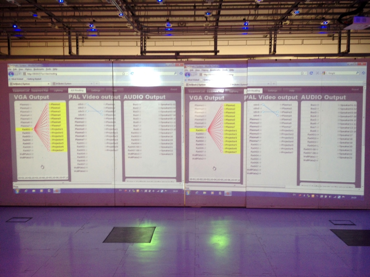 - 7 plasma screens with powered audio speakers for individual learning zones