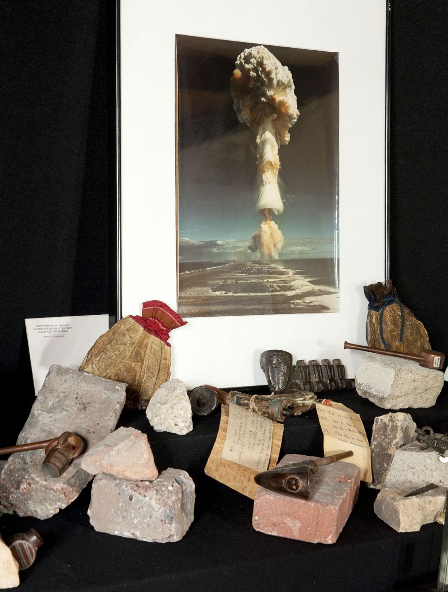 In summer 2012, Mike Nelson was commissioned to produce a new work on the university campus. Nelson, who represented the UK at the Venice Biennale last year and has twice been shortlisted for the Turner Prize, is best known for his environments that equate suggested literary fictions to spatial structures in immersive, atmospheric installations. His installation, The Ebb Tide, includes a series of ‘historic curiosities’ provided by the Archive of Modern Conflict, that evoked tales of lost cultures, mysterious places and the transformation of human experience by technology and conflict. Objects included the keys to the infamous island prison of Alcatraz, a piece of the first transatlantic telecommunications cable, plans for a Victorian time machine (that subsequently “vanished” without trace) and others that relate to humanity in conflict with itself and its environment.