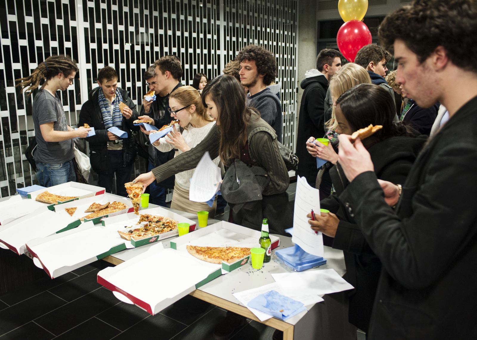 Over 150 UG and PGT students attended (our registration system broke down under the tsunami of arrivals), made light work of the 480 slices of pizza, 300 bottles of beer and 40 bottles of wine, and gave our graduates a thorough grilling for almost 3 hours. Feedback has been been very positive, with all students saying they found the event useful and enjoyable, that they were surprised at the range of careers our graduates follow, and that they would attend again.