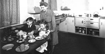 Children having tea at home in the kitchen, 1945. Photo courtesy of the National Archives