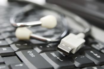 Stethoscope and computer keyboard