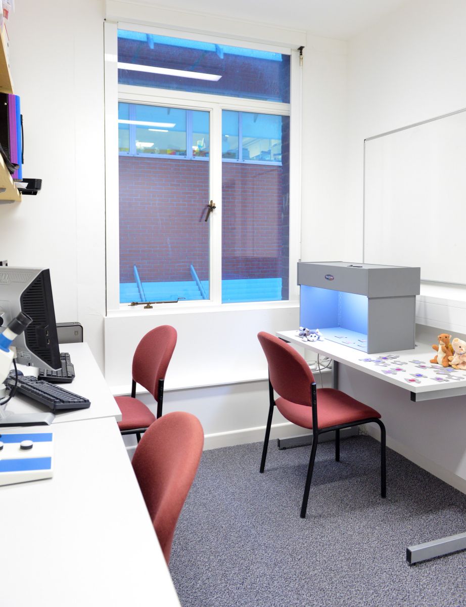 There are ten research rooms, including: a child interaction observation unit with one-way mirror; a room with CCTV for videoing child sessions; two rooms for experimental infant techniques with coding facilities; and a developmental psychophysics and eye-tracking room. The suite also includes multiple waiting and play areas appropriate for three age ranges (infants, toddlers and children) and tea/coffee facilities for visiting parents. Further details are provided in the Hub facilities description.