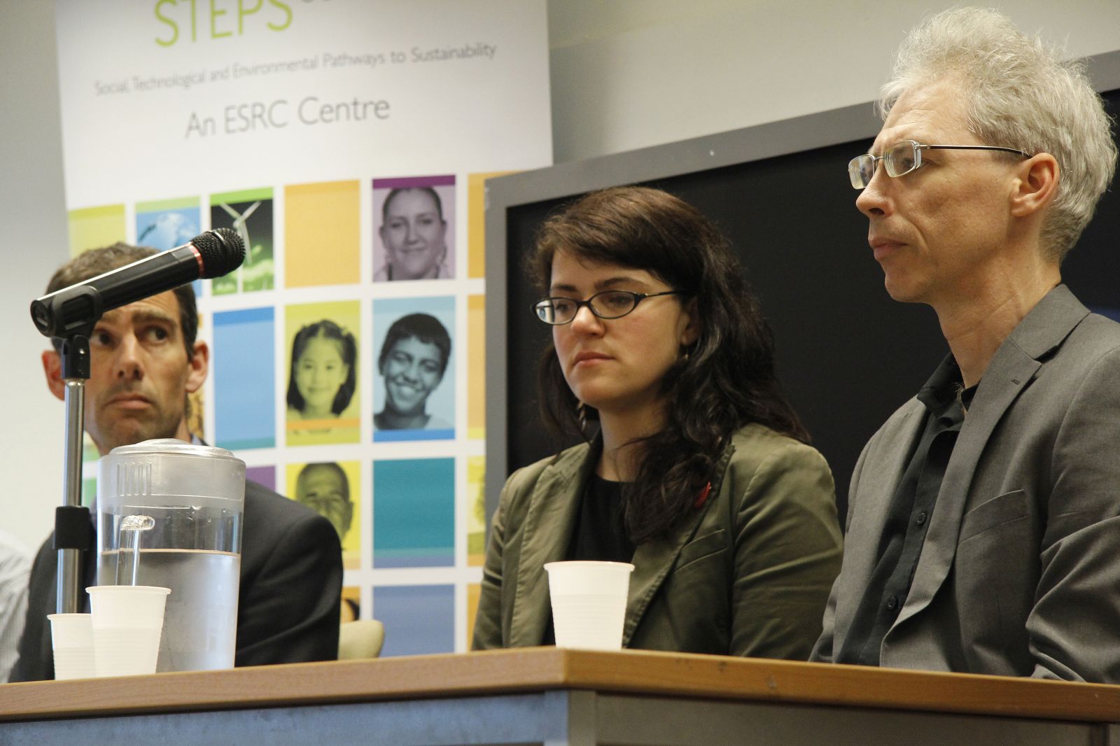 On Monday 20 May, SPRU staff - along with colleagues from IDS, a panel of invited speakers, students attending the STEPS summer school and members of the local community - sat down at the Jubilee Library to discuss the issue of fuel poverty, climate change and social justice. Our panel consisted of Kirsty Alexander (Head of Communications, Nuclear Industry Association) Thurstan Crockett (Head of Sustainability, Brighton and Hove City Council) Doug Parr (Chief Scientist, Greenpeace) and Jim Watson (Research Director, UK Energy Research Centre). In the chair was Alice Bell, research fellow and head of public engagement at SPRU.