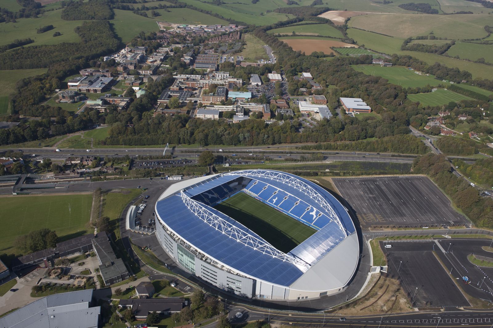 The American Express Community Stadium, Brighton & Hove Albion Football Club’s 28,000-seater stadium, is right next to the Sussex campus.