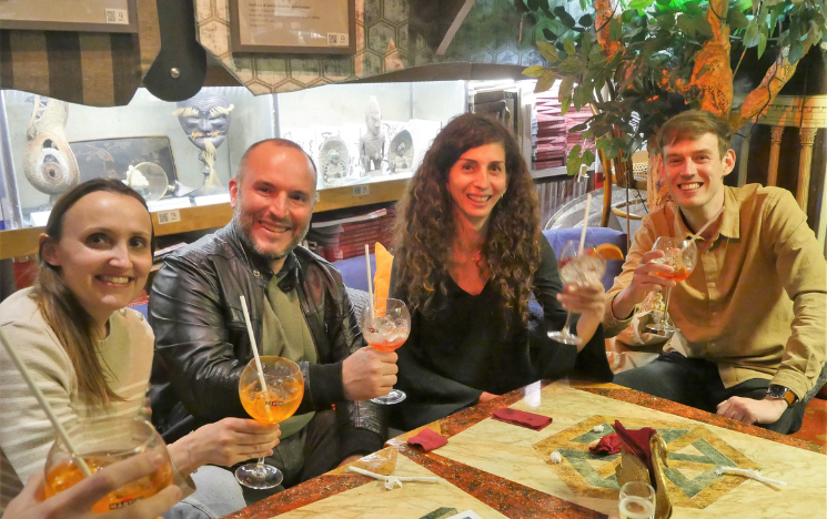 Alumni in Italy meet in a restaurant in Rome 2022.