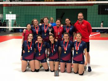 Women’s Volleyball and Club Coach Mark Byerley with their gold medals