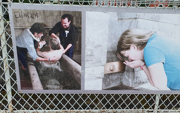 Modern pilgrims don’t necessarily approach the baths with the expectation of miraculous cure, particularly since the advent of the ‘water gesture,’ which has replaced immersive bathing since the COVID-19 pandemic. The gesture involves washing the hands and face with water poured by one of the shrine volunteers, and is understood by pilgrims as being more symbolic than substantive. For some, this is a welcome return to Bernadette’s original actions - after all, she didn’t bathe in the waters - and a reminder that miracles come from faith. Also, that miracles may not necessarily involve spectacular cure. Many pilgrims refer to the miraculous capacity of engaging with the waters to bring peace and resolution - to help them come to terms with illness or misfortune.